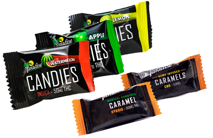 Premium high dose hard candies & caramels, infused with 50mg CO2 extracted THC & CBD rich hemp oil. Available in 50 count box.